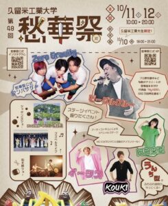 ・10/11(土)は久留米工業大学にて開催される『愁華祭』に出演させていただきます🍑✨
